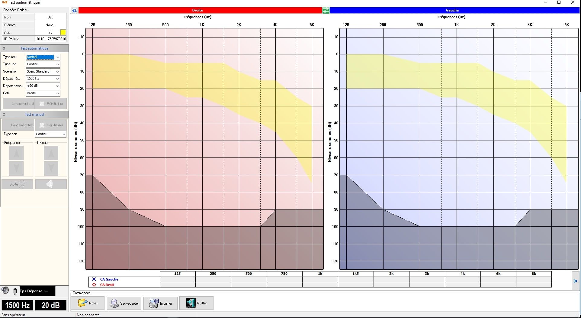 Ainsi, avec cet audiomètre informatisé USB, l'analyse du système auditif est très rapide et l'interprétation des audiogrammes est facilitée, selon EN 7029. Le médecin utilisateur peut calculer les pertes d'audition de façon très précise et notamment les seuils d’audibilité selon la méthode « Hughson– Westlake ».