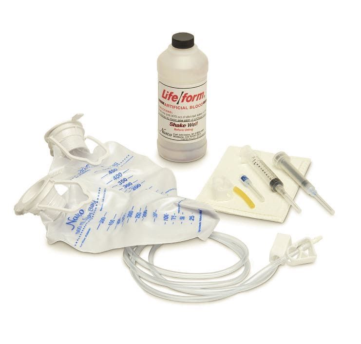 - un demi litre de sang artificiel veineux life/form (qui à la couleur du sang d'un patient sous dialyse)