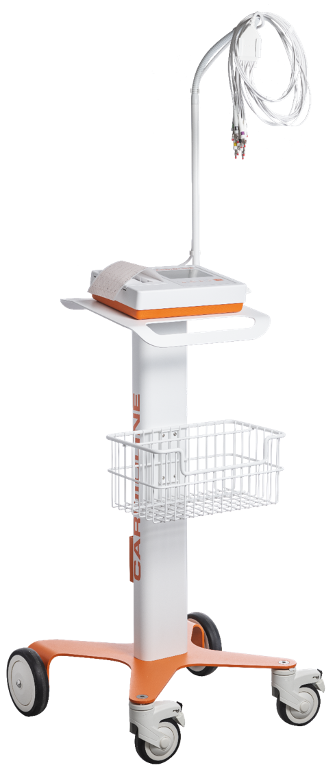 Sa structure solide assure une durabilité optimale, même en usage intensif, tandis que le plateau supérieur maintient l’ECG en toute sécurité. L’organisation pensée du chariot favorise un flux de travail plus efficace et une manipulation simplifiée du matériel.