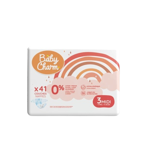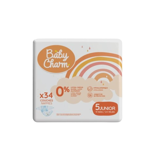 Optez pour les couches Baby Charm super absorbantes et profitez d’une protection fiable, confortable et performante, adaptée au quotidien de bébé.