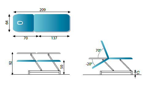 Doté d'un système de réglage électrique de la hauteur, ce divan Ferrox offre une plage de réglage impressionnante, allant de 50 à 92 cm, ce qui permet d'adapter la table à la hauteur souhaitée pour chaque type de traitement. Le dossier proclive-déclive, assisté par un vérin à gaz, offre une inclinaison confortable pour les patients, assurant ainsi une position optimale pendant les examens ou les séances de thérapie.