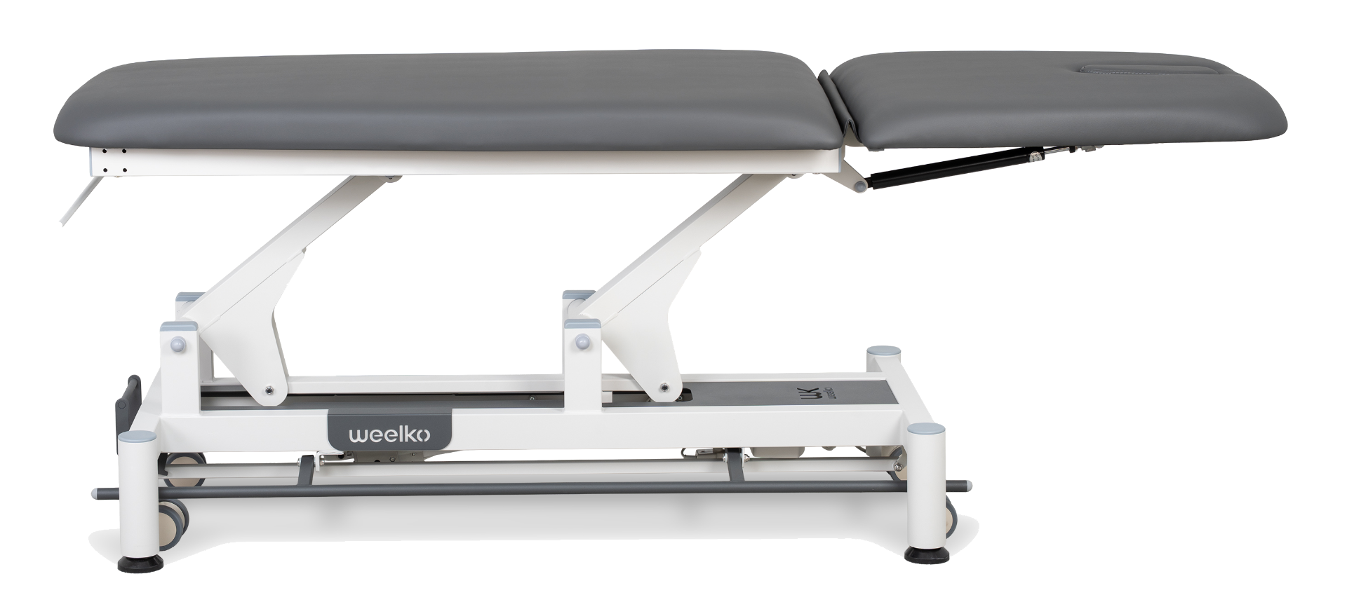 Le divan d'examen électrique Weelko est conçu pour répondre aux exigences des soins de physiothérapie et des traitements thérapeutiques. Doté d’une structure en 2 sections, il intègre un moteur permettant d’ajuster la hauteur avec précision grâce à une commande périmétrique. La hauteur se règle de 43 à 86 cm, offrant une adaptation simple aux différentes positions de travail.