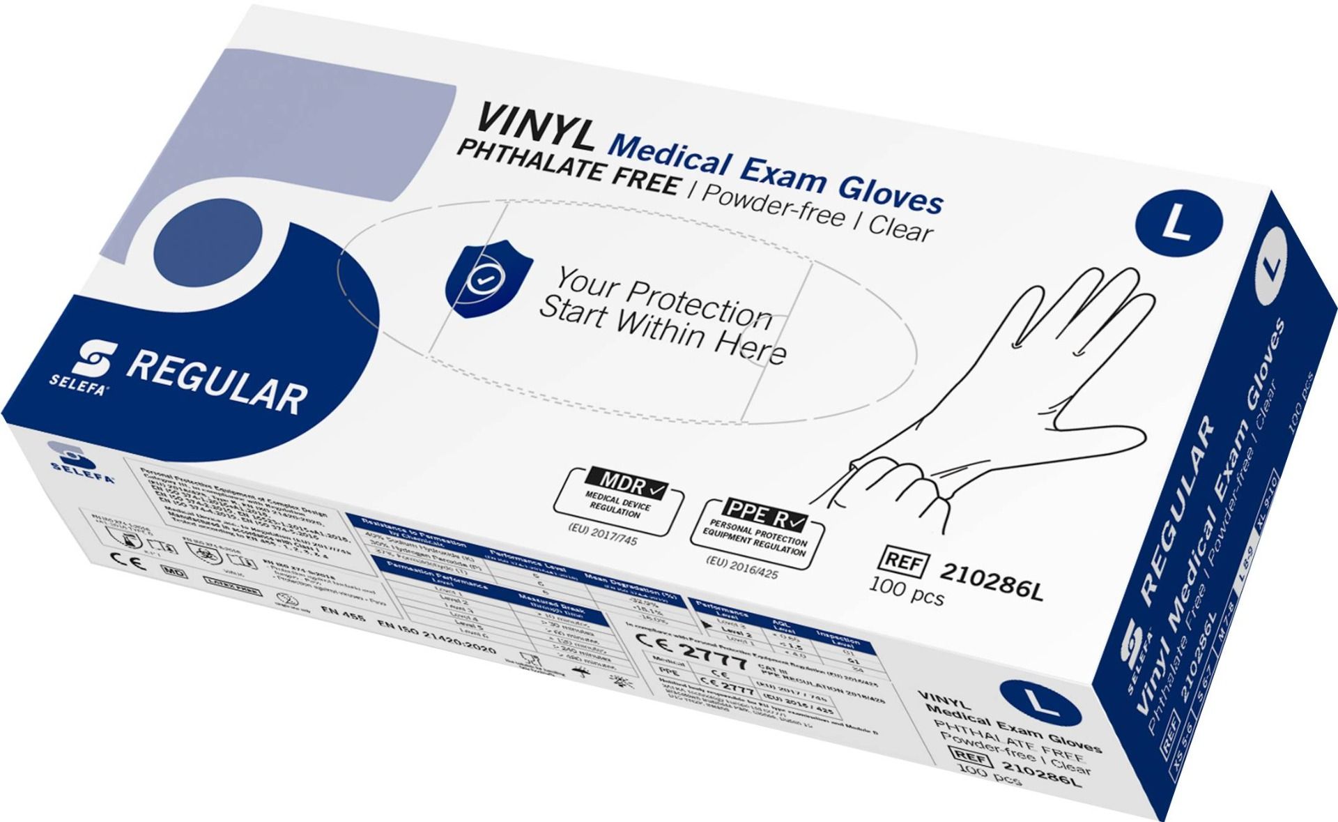 Pratiques et sûrs, ces gants vinyle Selefa Regular sont adaptés à tous, pour une utilisation confortable et fiable au quotidien.