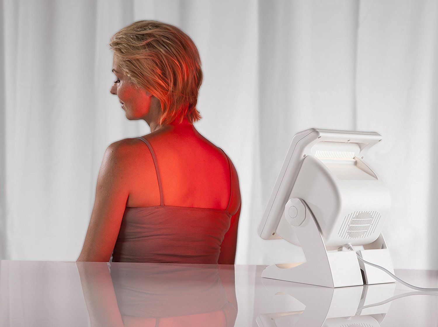Pour l'utiliser, il suffit d'appuyer sur le bouton Marche/Arrêt et de sélectionner le temps du traitement grâce à la minuterie (entre 1 et 15 minutes). L'effet chauffant des rayons infrarouges à travers la large plaque en céramique est immédiat.