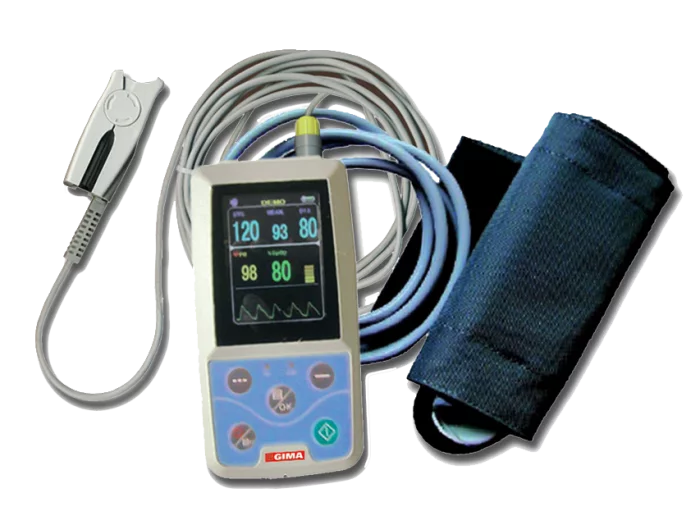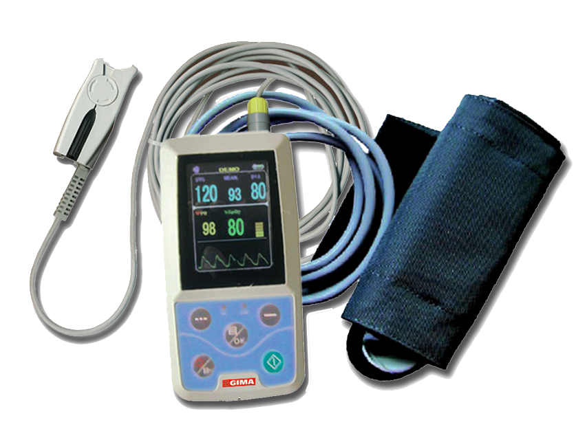 Le moniteur Holter ABPM + POULS + SpO2 avec logiciel de Gima est un appareil de surveillance de la santé qui mesure simultanément la pression artérielle ambulatoire, le pouls et la saturation en oxygène dans le sang (SpO2).