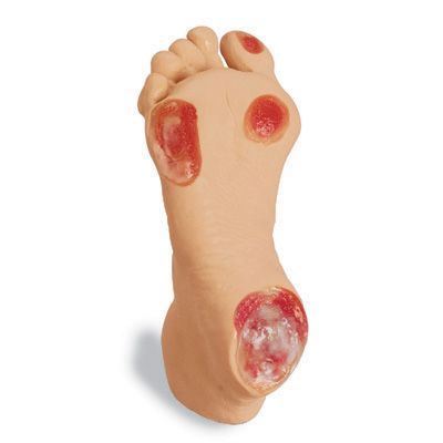 Les ulcères pédieux chroniques affectent le plus souvent le sujet âgé ; nous avons conçu le système Elderly Pressure Ulcer Foot pour l’instruction aux soins et au nettoyage des ulcères de pression à divers stades. Les ulcères de pression sont plus susceptibles d'apparaître aux points de pression tels que les talons, les extrémités des orteils, entre les orteils ou partout où les os peuvent faire saillie et frotter contre les chaussettes, les chaussures ou les draps de lit. Cette réplique comporte l’ensemble des quatre stades de gravité :