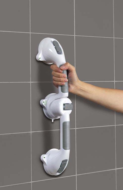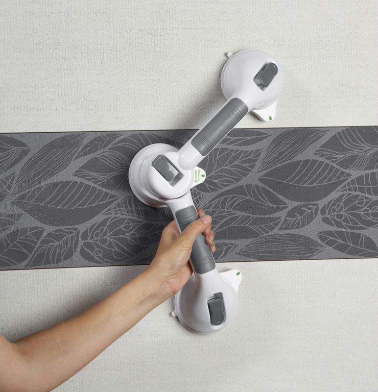 La poignée de sûreté articulée LA220101 Lanaform permet à ses utilisateurs de se déplacer, se lever, s’abaisser ou s’asseoir en toute sécurité. Grâce à ses trois ventouses mécaniques et ses leviers d'aspiration, la poignée se fixe facilement sur un support en carrelage, en verre, en fibre de verre ou en porcelaine. La poignée ne peut en aucun cas être placée sur une surface d'un autre type, une surface poreuse n'étant pas adaptée à une bonne fixation. La poignée arbore des témoins de couleurs qui permettent de s'assurer qu'elle est bien fixée; VERT : la poignée est correctement fixée, ROUGE : elle nécessite d'être refixée.