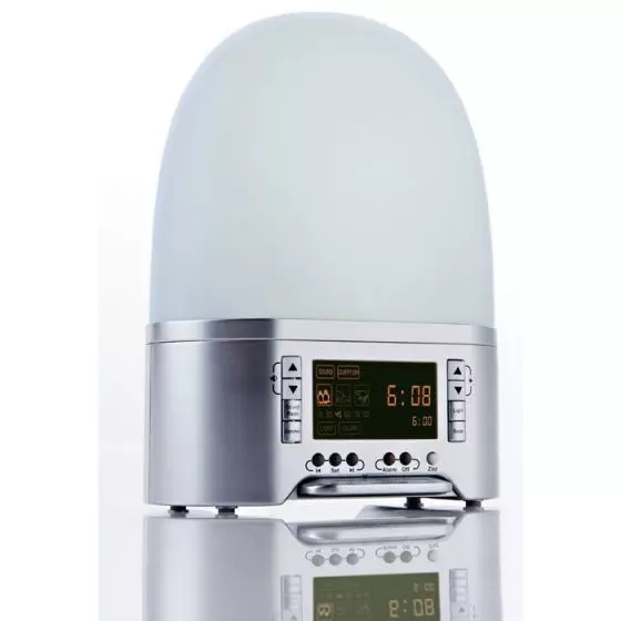 Ce réveil Simulateur d'aube Medisana Sac, vous propose 8 sons naturels (bruits de la nature) ou une tonalité de réveil doux. Sa lumière s’élève progressivement pendant 30 minutes avant la sonnerie du réveil. La luminosité se règle de 0 à 20 pour atteindre 400 lux. Avec le Réveil Lumineux Medisana vous pourrez choisir 6 réglages lumineux pour une lumière d'ambiance et de bien-être. Cet appareil dispose d'une ampoule à économie d'énergie basse consommation. Le Réveil Lumineux Medisana est équipé d’une radio FM numérique et d'un système de reconnaissance de l'heure quelque soit le pays dans lequel vous habitez.