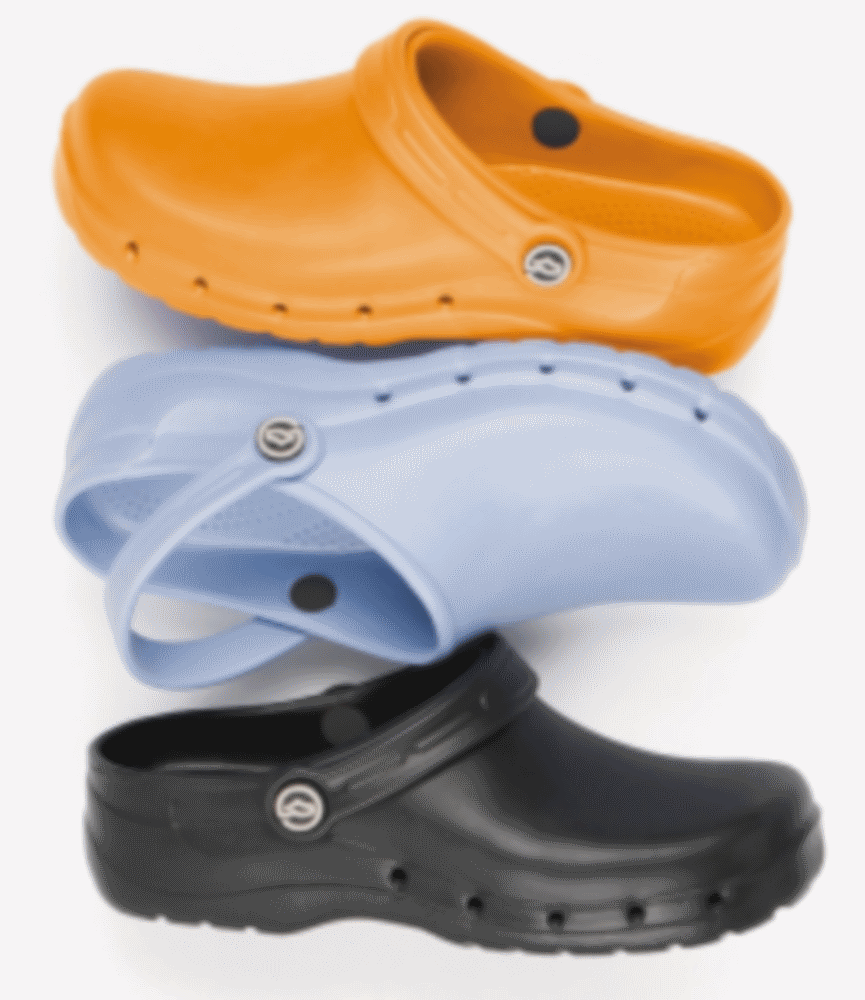 Très confortable et non salissants, ces sabots extrêmement légers (130 g) sont lavables en machine ou à la main à 50°C. Dotés d'une surface antistatique et d'une semelle antidérapante, les sabots restent fiables dans les lieux humides sans risque de glisser, et les lanières multipositions permettent à ces derniers de rester bien accrochés au pied, laissant le choix à l'utilisateur de placer la lanière à l'arrière ou à l'avant du pied. Les 10 aérations latérales permettent une bonne circulation de l'air, et la semelle anatomique interne absorbe les chocs pour un maximum de confort.