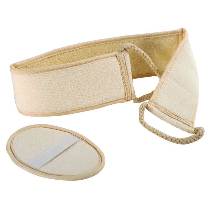 Sangle lave-dos et éponge loofah Holtex - Encadrée par une bande en loofah - Idéale pour enlever les impuretés et les peaux mortes - Fournie avec une éponge en loofah - Poids : 200 gr