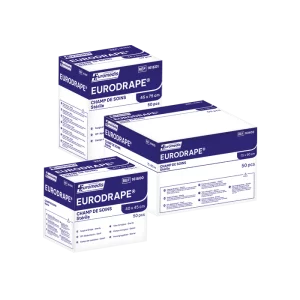 Pour une fixation supplémentaire, le set comprend trois bandes adhésives de 10 x 50 cm, assurant que les champs et les équipements restent en place pendant la procédure. Enfin, quatre serviettes de 35 x 40 cm sont fournies, essentielles pour absorber les liquides et maintenir un champ opératoire propre et sec.
