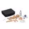Lors de l'accès, un “pop” est ressenti au moment où l'aiguille pénètre dans la veine suivi d'une récurrence réaliste du sang simulé, confirmant ainsi le placement correct de l'aiguille. Les veines ont été spécialement conçues avec un petit diamètre interne tel qu'on les trouve chez un petit enfant. Vous pouvez vous exercer à l'accès, la fixation, la pose de pansement, aux soins et à l'entretien d'IV et de PICC standard (cathéter central inséré à la périphérie). Le nouvel ombilic et la nouvelle valve ombilicale permettent de répéter la cathétérisation avec un cathéter ombilical 5FR dont l'exactitude de l'emplacement est confirmée par un retour de sang. Les ouvertures nasales et orales permettent la mise en place de canules nasales ainsi que de sondes endotrachéales, nasogastriques et gastriques pour enseigner l'aspiration, la fixation, la pose de pansement, le nettoyage et l'entretien.