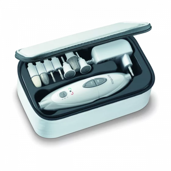 L'ensemble manucure/pédicure sanitas SMA 35 est un set complet qui permet de prendre soin de la beauté de ses mains et de ses pieds. L'appareil est livré avec 7 embouts différents de qualité, qui permettent de limer, poncer, lisser et modeler les ongles. Il est possible de choisir la vitesse de rotation gauche/droite pour s'adapter aux différents types de problèmes à traiter.