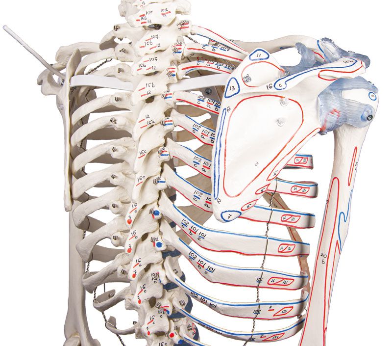 Squelette humain Bert avec marquage des ligaments Erler Zimmer 3010 est quelque peu similaire au modèle 3001, mais présente en plus les éléments suivants les ligaments d'articulation pour :