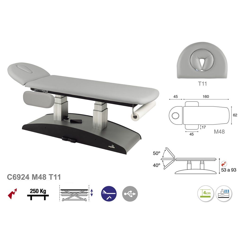 Réglage de la hauteur par colonne de levage symétrique à double moteurs électriques, avec commande au pied des deux côtés.
