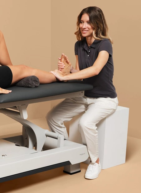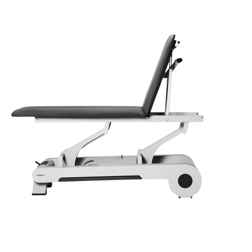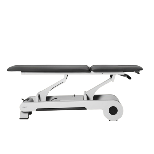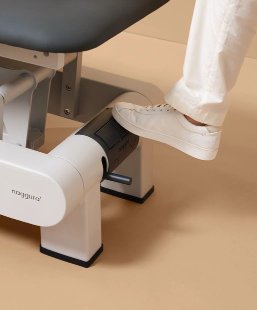 Le réglage électrique de la hauteur, fluide et silencieux, s’effectue de 56 à 92 cm grâce à un cadre périphérique intégré au châssis. Accessible sur tout le pourtour, ce système permet d’adapter rapidement la hauteur sans interrompre la séance. Les commandes au pied complètent l’ensemble pour des ajustements précis, favorisant une posture de travail naturelle et sans contrainte.