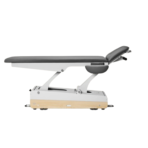 Son système électrique unique, combiné au dispositif périphérique Space Ball, permet un réglage en hauteur fluide, précis et silencieux de 48 à 90 cm. La Space Ball, cadre périphérique innovant, permet d’ajuster la hauteur de la table médicale tout autour de sa base, mains libres, grâce à des commandes circulaires placées aux extrémités. Les ajustements rapides sont ainsi facilités, favorisant une posture optimale pour tous types de soins, que ce soit en physiothérapie ou en ostéopathie.