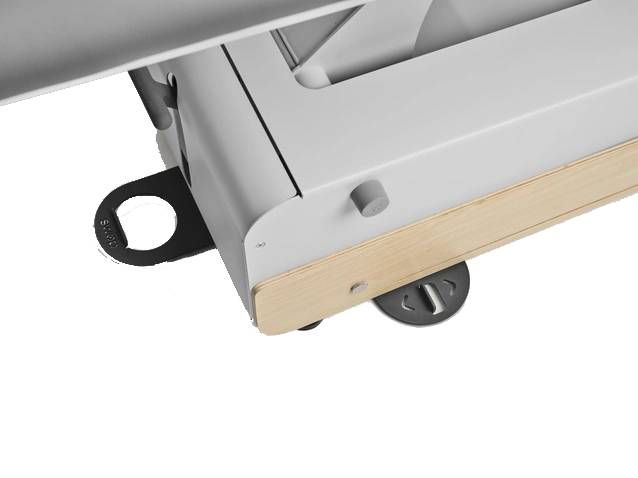 Son cadre périphérique à commande circulaire, breveté, permet un réglage intuitif de la hauteur sans les mains, offrant une ergonomie optimale pour des séances prolongées. Les accoudoirs TwinLift, réglables en continu, assurent une position physiologique idéale pour le patient en décubitus ventral tout en réduisant la fatigue du praticien.