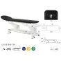 Elle dispose de roulettes escamotables grâce à une seule pédale et d'un porte rouleau. Sa têtière dispose d'un trou visage avec bouchon inclus.