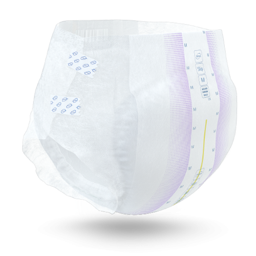 Une protection de type change complet, offrant une absorption et une sécurité maximum contre les fuites, adaptée aux cas d'incontinence fécale. La large zone d'attache adhésive Easy Fit garantit un ajustement parfait et confortable ; il est possible de la repositionner plusieurs fois sans déchirer la protection. TENA Slip bénéficie en outre de la technologie FeelDry pour une absorption incomparable et d'un double noyau qui absorbe et piège rapidement l'urine.