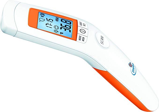 Découvrez le thermomètre infrarouge NO TOUCH de chez Mebby. Ce type de thermomètre mesure la température corporelle sans contact. Il n'est pas invasif. Ce thermomètre sans contact est idéal notamment pour prendre la température des enfants et des nourrissons. Il s'agit d'un thermomètre multifonctionnel, il vous donne la possibilité de mesurer la température corporelle, mais également la température des liquides et des objets. Vous avez la possibilité de choisir la modalité de prise de température.