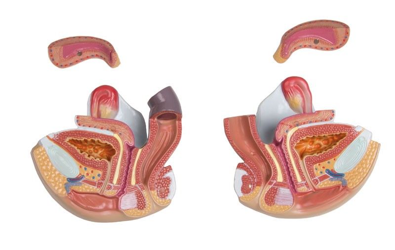 La tête est sectionnée pour exposer le squelette, le cerveau, la bouche et la région de la gorge ainsi que l’œil. La cou est également disséqué pour laisser apparaître le larynx, la thyroïde et les vaisseaux cervicaux. Sur le torse, le thorax et l'abdomen sont complètement ouverts et les organes internes peuvent être retirés et plusieurs d'entres eux sont en parties démontables. Les appareils génitaux mâle et femelle sont adaptables au choix.