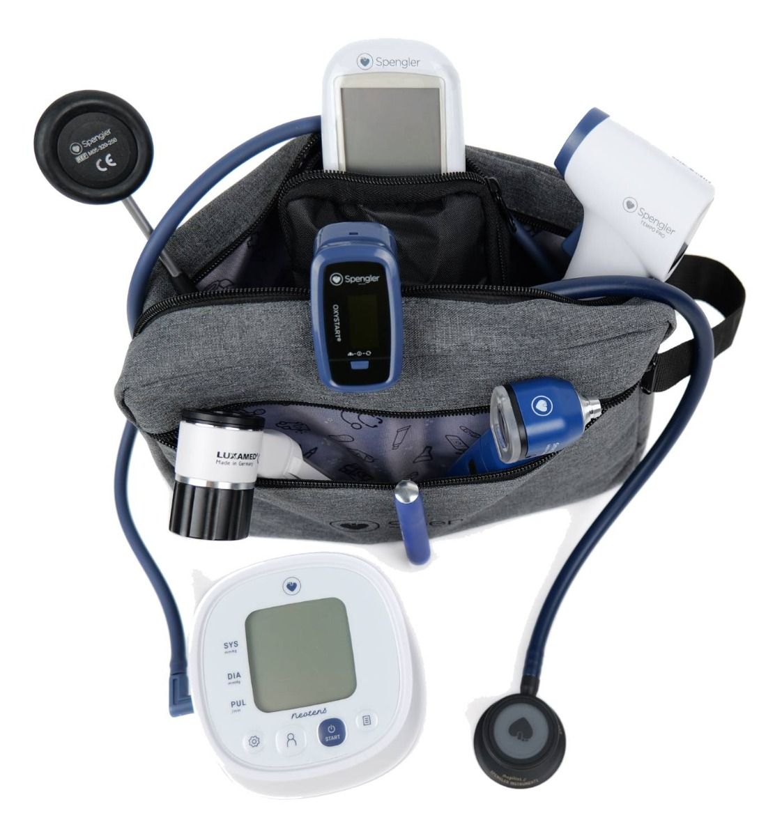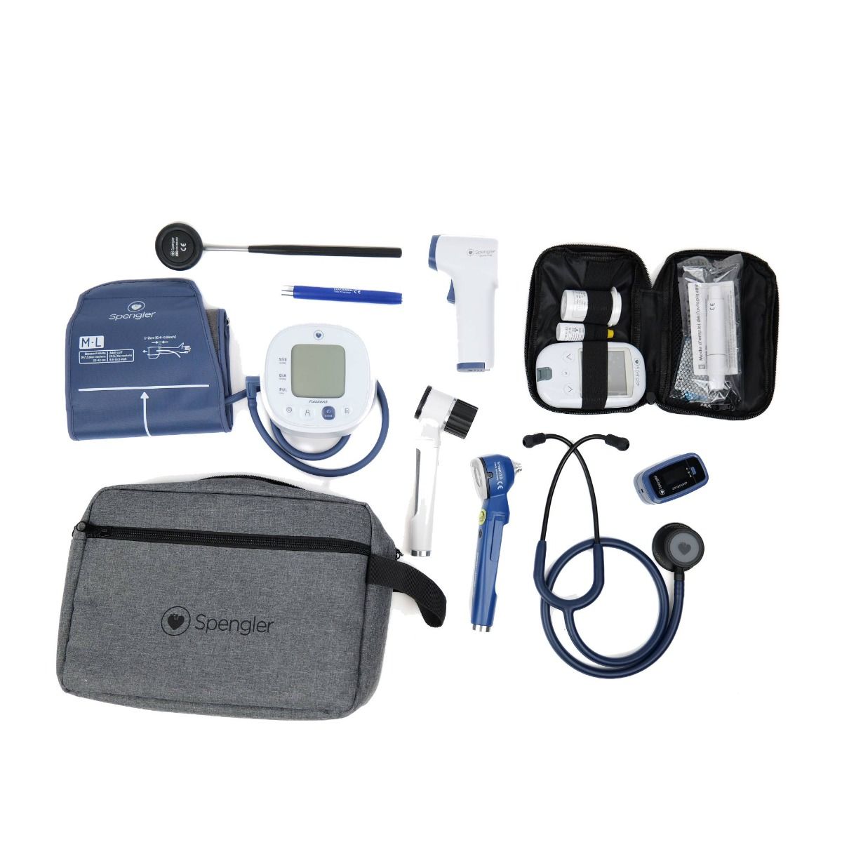 La trousse de diagnostic médicale complète Spengler concentre l’expertise et la fiabilité de la marque dans un ensemble cohérent d’instruments essentiels. Pensée pour accompagner les examens cliniques courants comme les situations d’urgence, elle réunit des dispositifs performants couvrant l’ensemble des actes de diagnostic : contrôle des réflexes, auscultation, mesure de la pression artérielle, de la saturation en oxygène et de la glycémie, prise de température sans contact, observation cutanée, inspection du conduit auditif et éclairage ciblé.